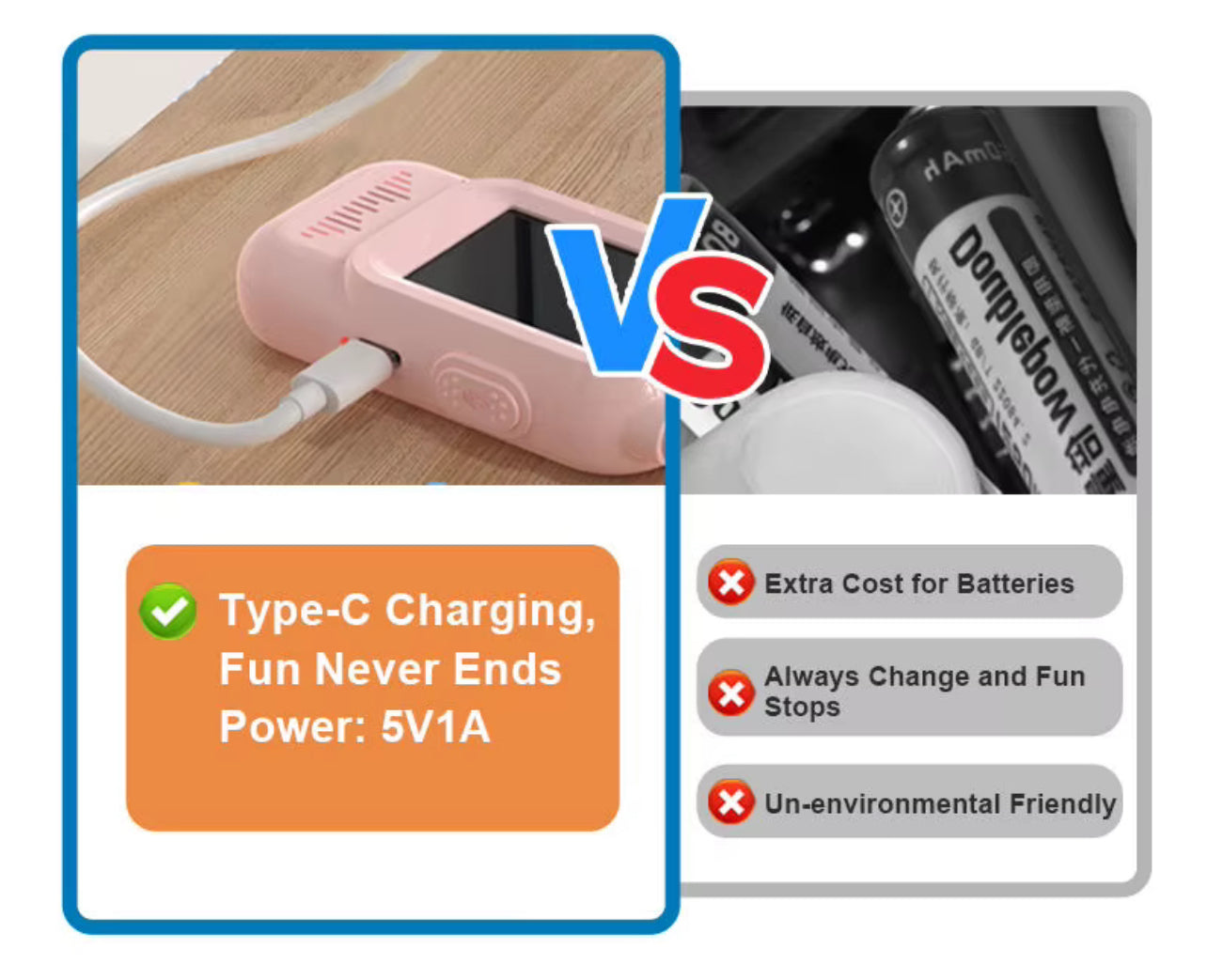 🔋 Rechargeable Battery with USB‑C Charging – Eco‑friendly and ready for hours of nonstop play.